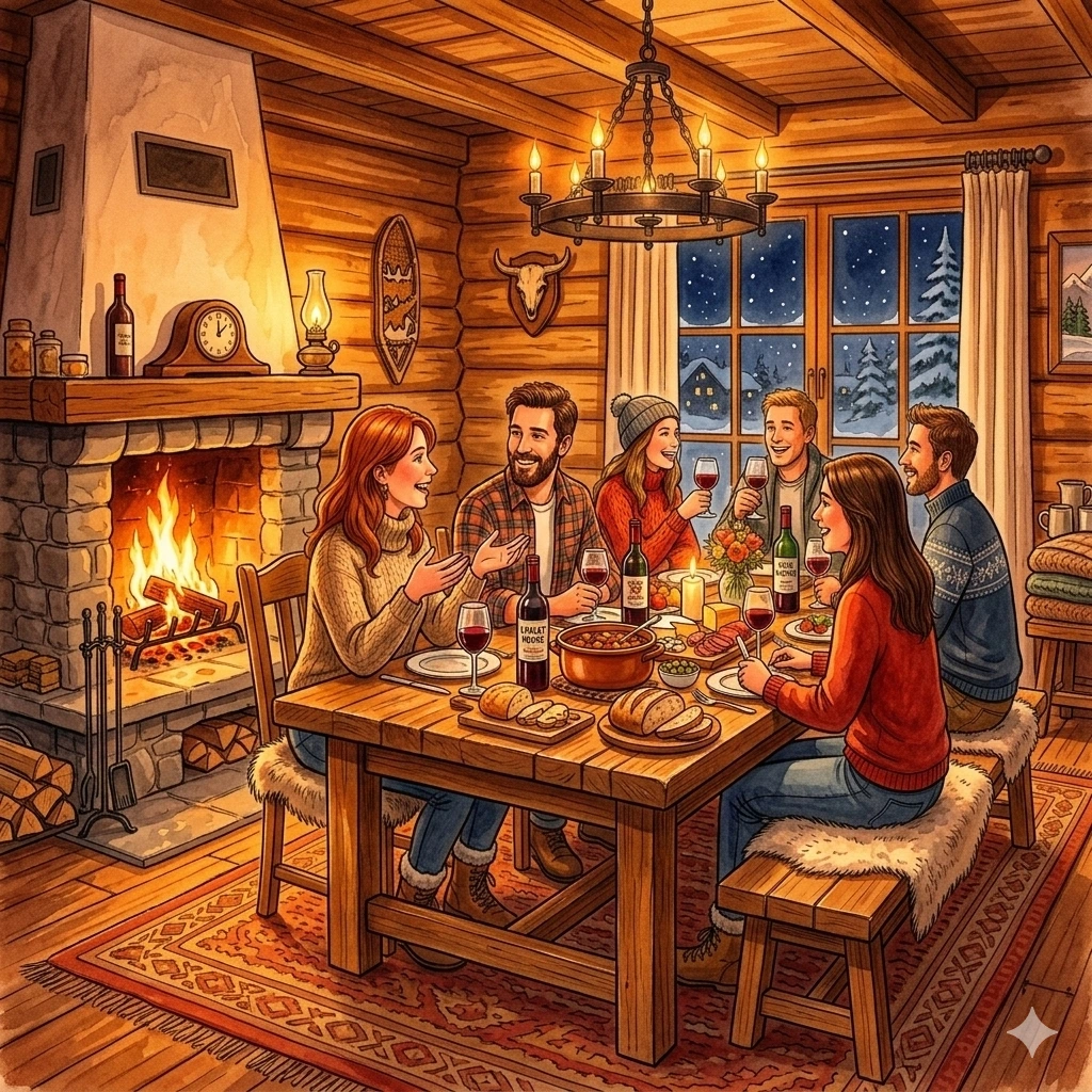 La journée se termine, on s'installe autour de la table. Les bouteilles sont encore bouchées, les verres vides, tout le monde prend le temps d'arriver.